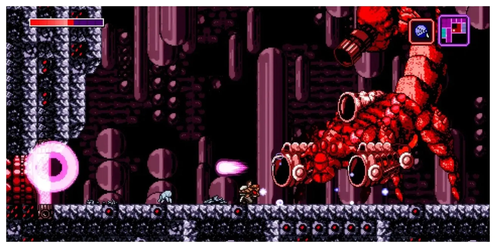 Khung cảnh đậm chất khoa học viễn tưởng của Axiom Verge, với nhạc nền chiptune bí ẩn và lôi cuốn